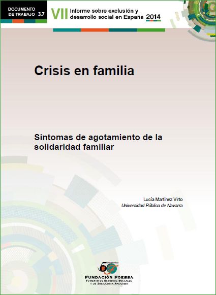 .jpg) | Mardaras, M., Vicente, T.L. La integración de las mujeres del Magreb en Euskadi: algunas reflexiones para la intervención social. Zerbitzuan, n. 56, 2014, p. 59-73. La presencia de mujeres magrebíes en nuestra sociedad está abriendo numerosos debates en torno a su integración. Aunque en el plano teórico se reconocen distintos modelos de incorporación de la población inmigrante a la sociedad receptora y sus dimensiones más allá de las diferencias culturales, en la práctica el debate se plantea frecuentemente en términos mucho más reducidos.  | .jpg) | Martínez, L., Crisis en familia. Síntomas de agotamiento de la solidaridad familiar. VII Informe sobre exclusión y desarrollo social en España. Serie: Documento de Trabajo. Madrid, Fundación FOESSA, Cáritas Española Editores, 2014. 53 p. El objetivo de este estudio es conocer cómo han evolucionado las formas de gestión de la crisis y la capacidad de ayuda en las familias. Para ello se atenderá, por un lado, a la identificación de los hogares que no cuentan con ayuda a través de la incidencia de las situaciones de aislamiento y conflicto social en las diferentes dimensiones de la exclusión social, así como, de las características sociodemográficas de estas personas.  | |